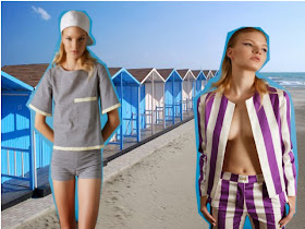 The transition from childhood to adolescence is express in outfits with a playful mood and sporty, stripey looks, shorts, hoodied jackets and rucksacks, moving to BCBG combinations of blouses, above the knee skirts, blazers and boxy jackets, and finishing it all off with sensual and sophisticated looks - trouser suits, maxi top and dresses in pierced net that leaves the back completely naked.